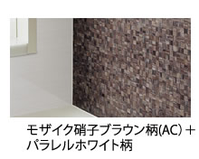壁柄オフローラの壁柄壁・(eパネル)・乾式目地 カビの栄養の元である「可塑剤」を使用しない壁を採用したことで、カビが生えにくく、お手入れがラクな壁に