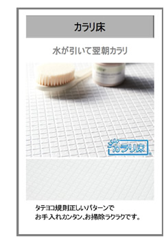 床表面に特殊処理を施した親水層の効果で、皮脂汚れと床の間に水が入り込み、 汚れ落ちがスムーズに。ブラシでのお掃除がラクラクです。