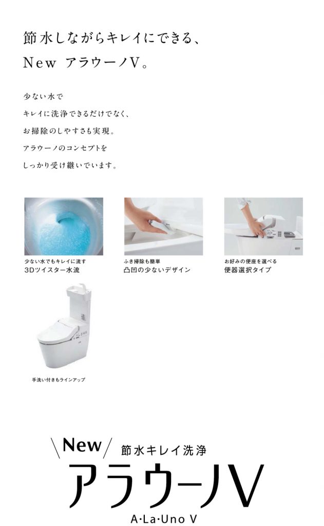 素材やトイレの流れ方・機能など、アラウーノVの特徴をご案内いたします。