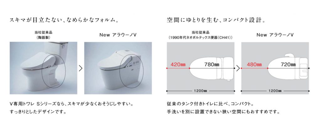 そのためNewアラウーノVは、リフォームや2階のトイレに最適なトイレとなっております。