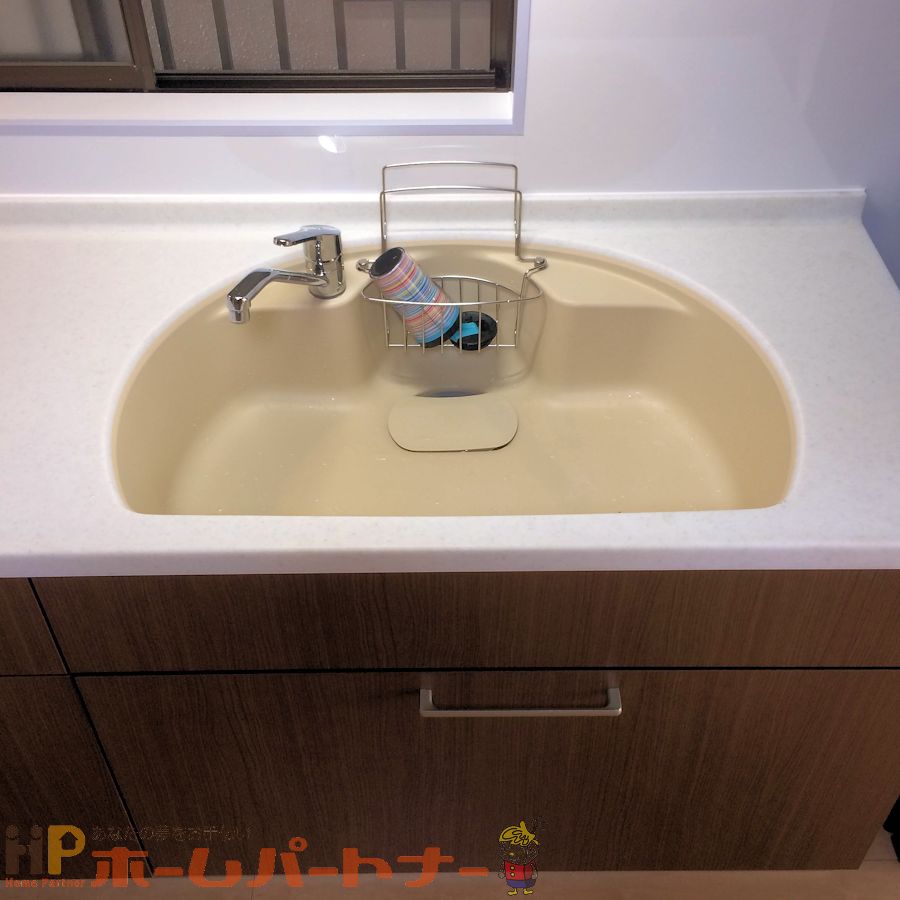 リフォーム施工後シンク:人工大理石のシンクになりました。